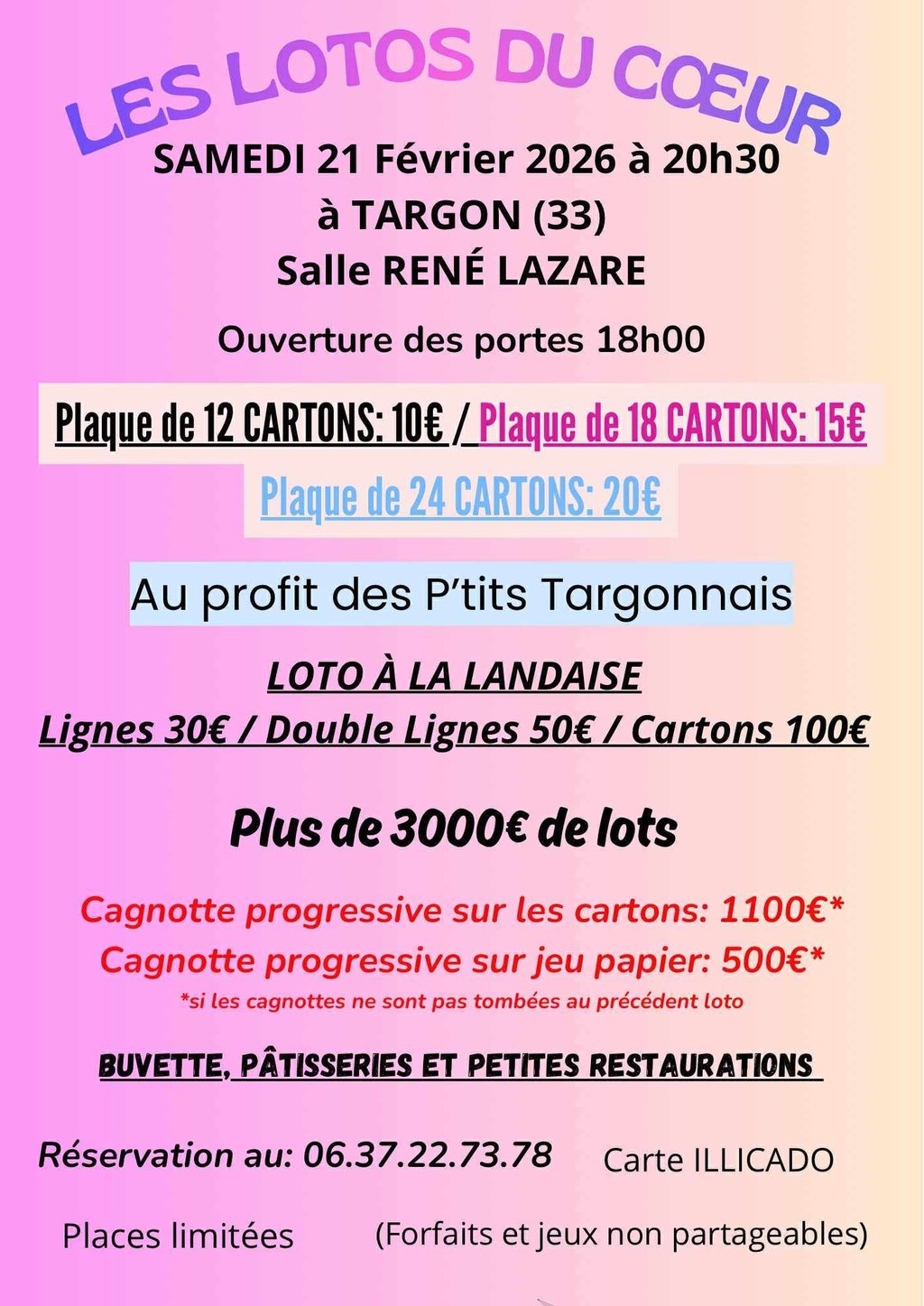 🎱 Organisé par l'association les Lotos du Coeur mais toutes les recettes seront reversées aux P'tits Targonnais !
