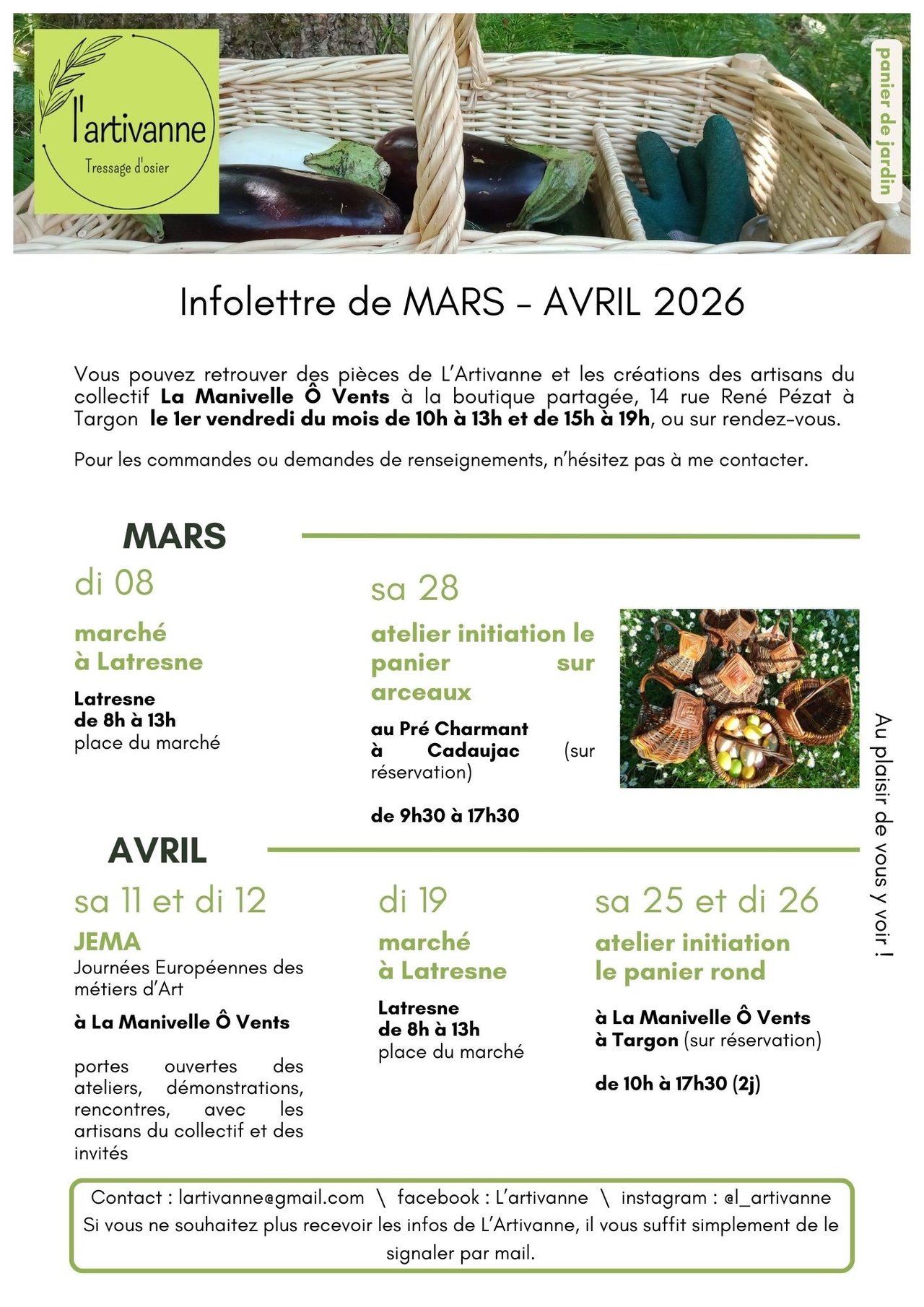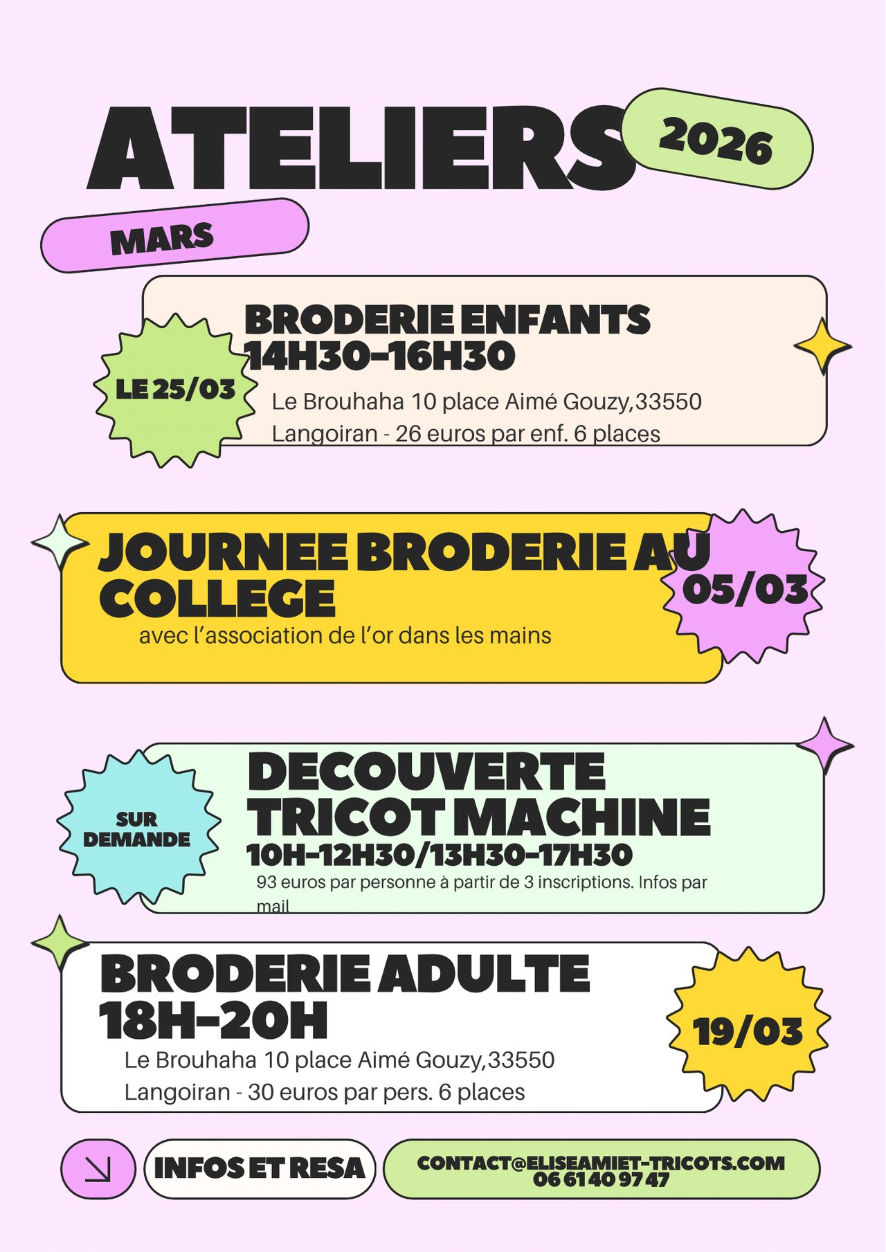 Contactez-nous par mail à lesatelierspartages33@gmail.com pour plus d’infos.