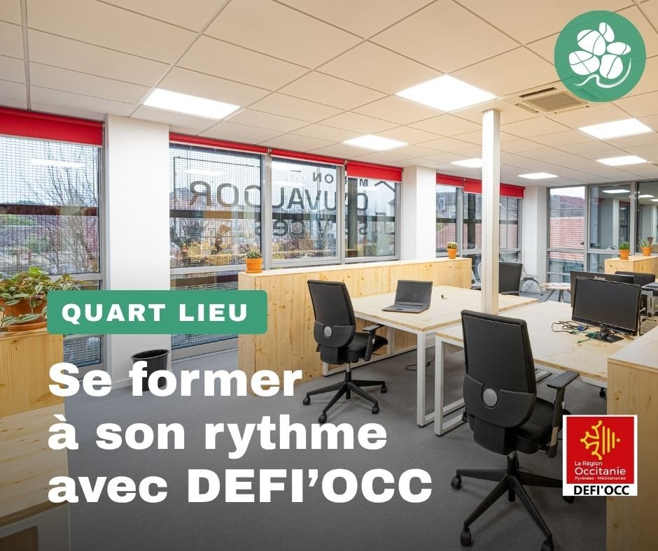 Labellisé espace de formation “Défi Occ” par la Région Occitanie et l’État, le Quart Lieu met à disposition locaux et équipements informatiques pour suivre vos formations en ligne, que vous soyez demandeur d’emploi ou bénévole associatif.