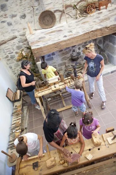 Sur le Sentier de l'Imaginaire "La Forêt Magique". 4 espaces à découvrir : le jardin des 5 sens, l'espace bois (exposition dédiée au métier du bois), la Maison Manhes (quotidien d'une famille avant la 1ère guerre mondiale) et l'Epicerie de Cécile.
