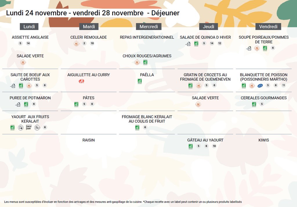 Au menu de la cantine cette semaine
