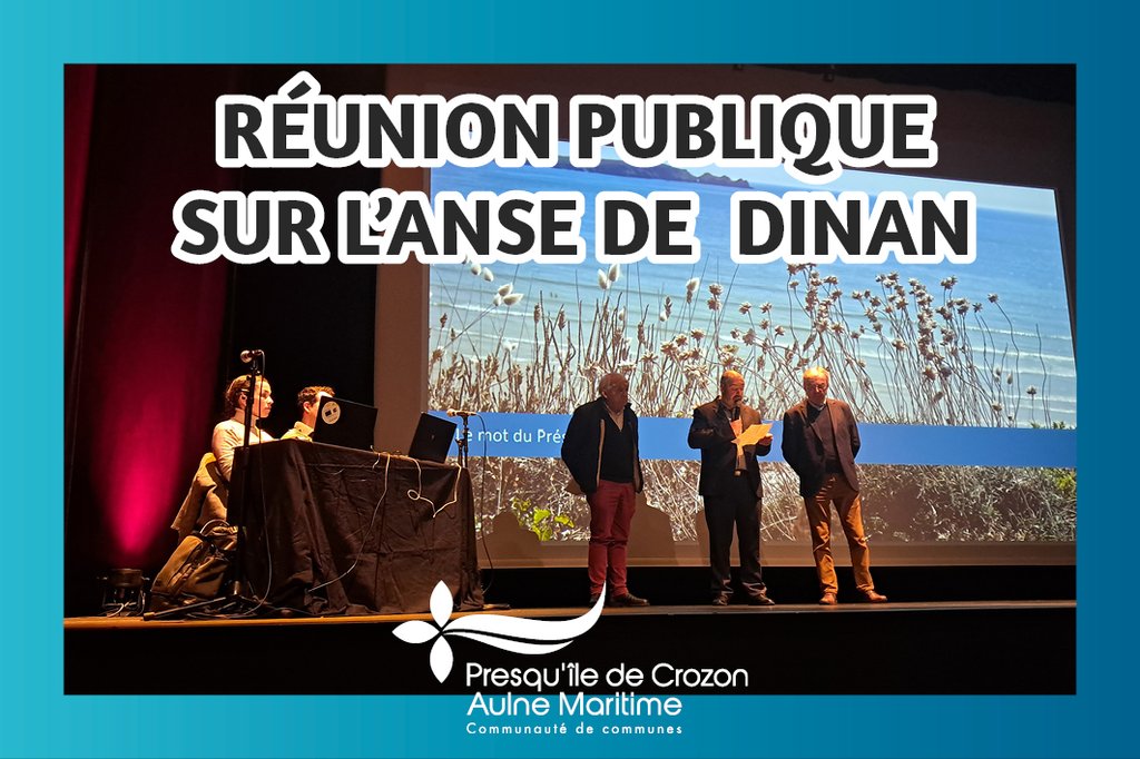 Mardi 6 janvier, une réunion publique a été organisée au centre culturel l’Améthyste à Crozon afin de présenter le projet d’aménagement des sites de l’anse de Dinan : Kerloc’h, Kersiguénou, Goulien et la pointe de Dinan. Ce projet, porté par la Communauté de communes Presqu'île de Crozon - Aulne maritime en collaboration avec les communes de Crozon et Camaret-sur-mer, a été élaboré à l’issue de plusieurs mois d’étude et de concertation.