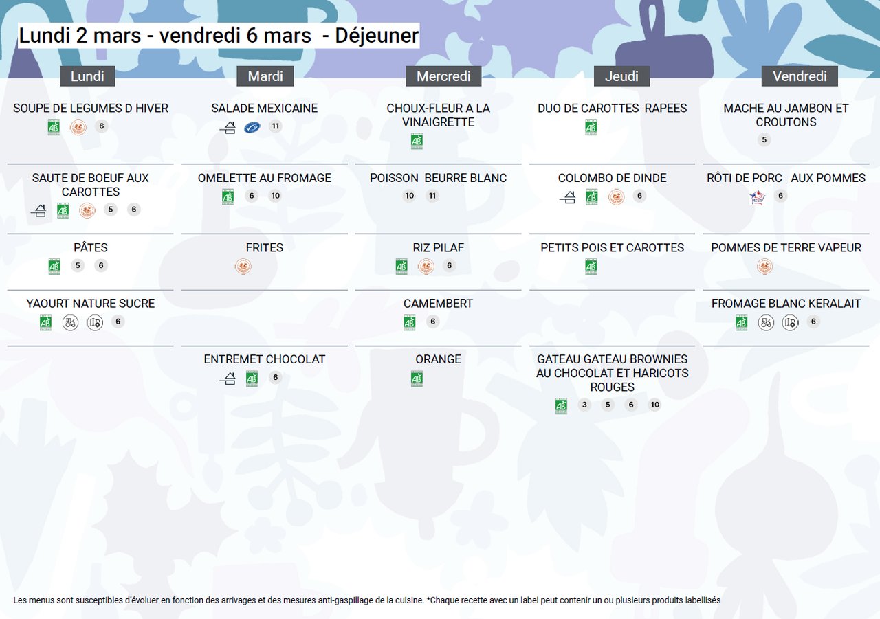 Au menu de la cantine cette semaine
