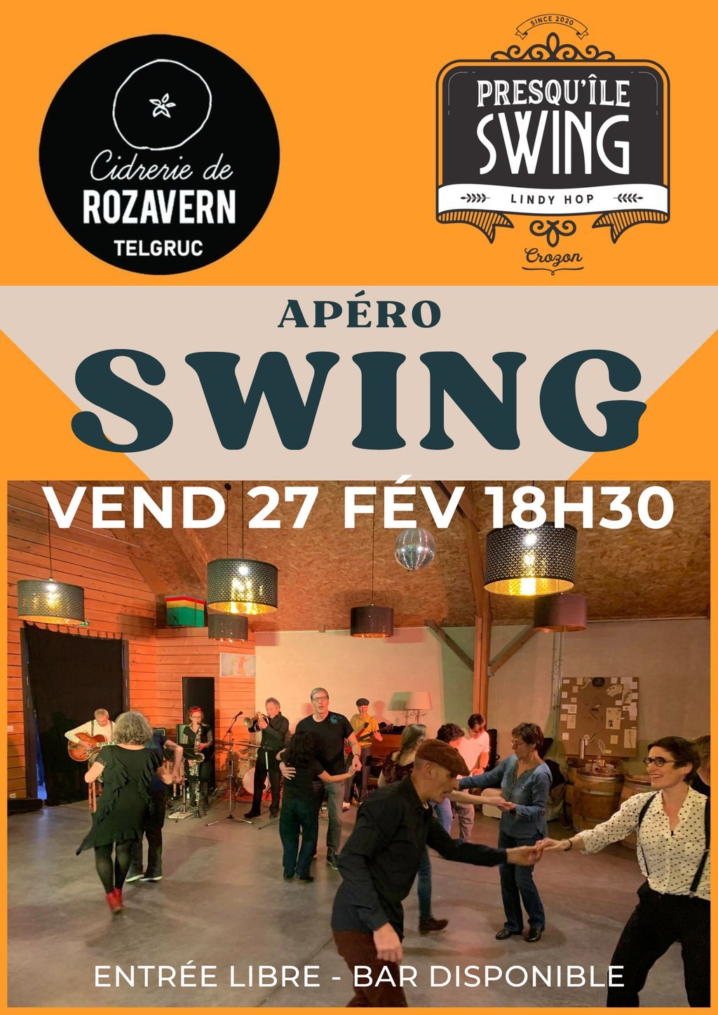 Rendez-vous à la cidrerie de Rozavern pour un apéro swing avec Presqu'île Swing.