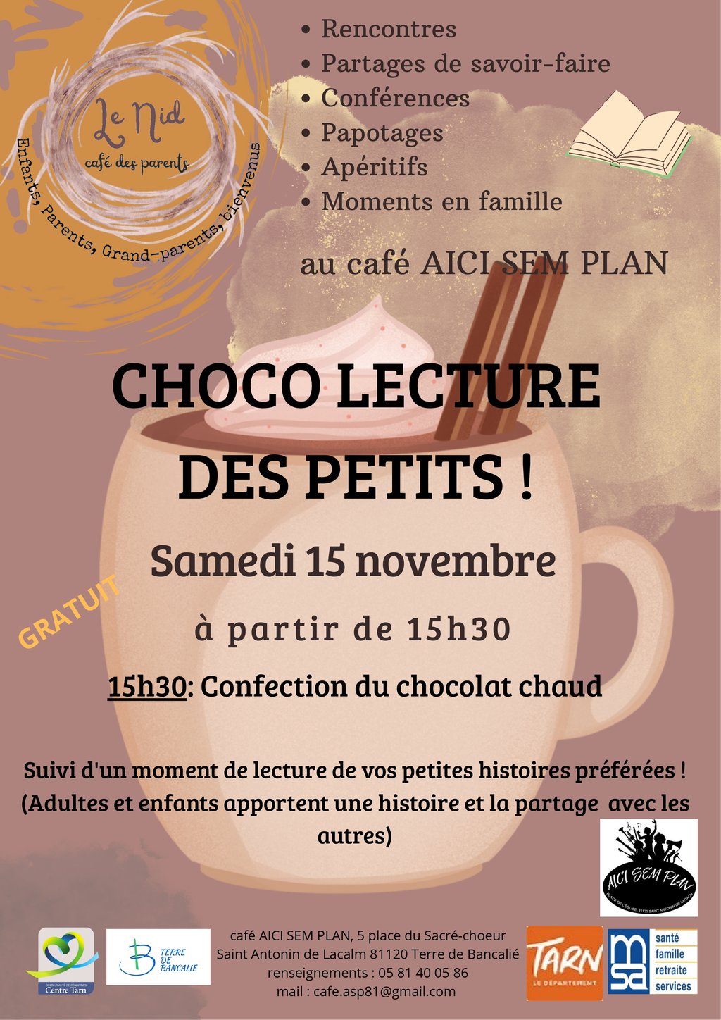 Le Nid, le café des parents, avec pour thème de rencontre cette fois le Choco lecture des petits.