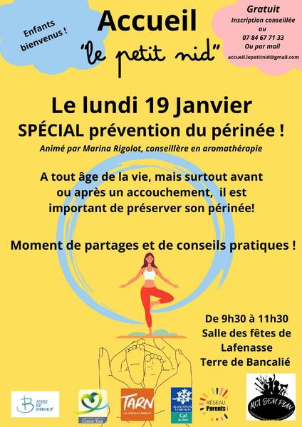 Accueil périnatalité "Le Petit Nid" spécial prévention du périnée. Animé par Marina Rigolot, conseillère en aromathérapie