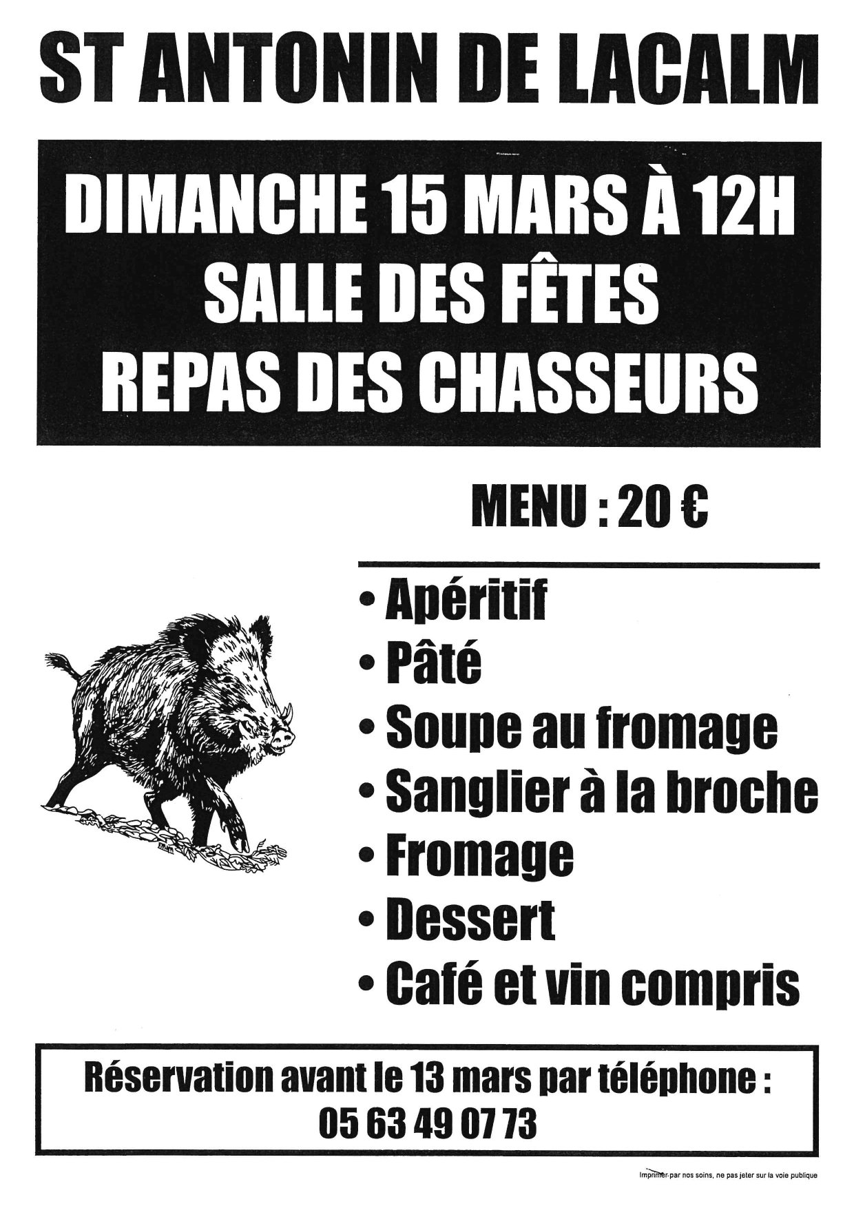 Réservation avant le 13 mars par téléphone au 05.63.49.07.73