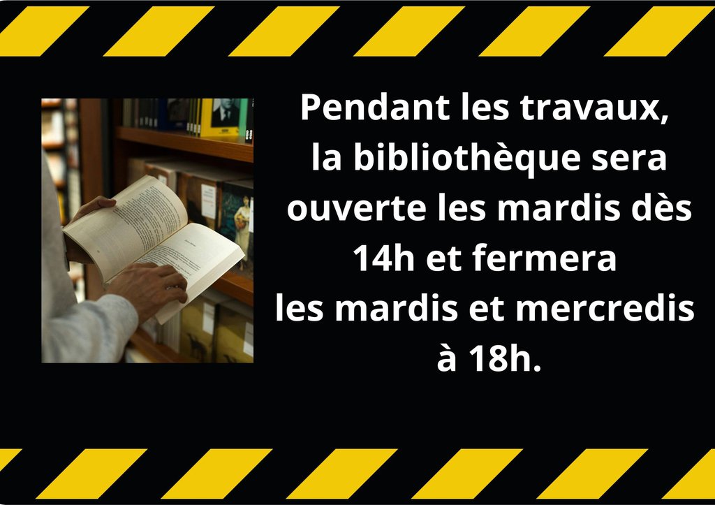 [BIBLIOTHÈQUE MUNICIPALE - CHANGEMENT HORAIRES DURANT LES TRAVAUX]