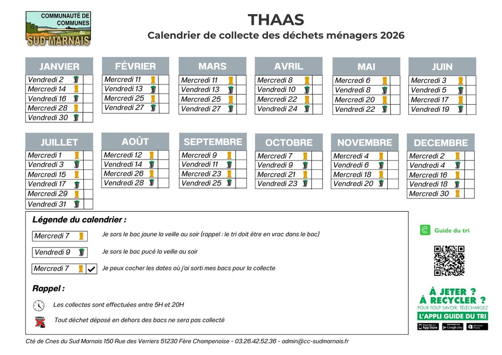 Calendrier de collecte des déchets ménagers 2026