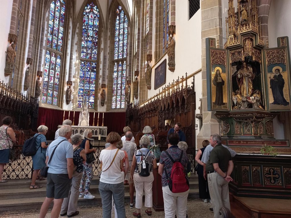 Décryptez les secrets de cet édifice, l'un des 3 plus beaux bâtiments gothiques de la région du Rhin supérieur avec la Cathédrale de Strasbourg et celle de Fribourg.Chef-d'œuvre de l'art gothique du primitif au flamboyant, la Collégiale Saint-Thiébaut regorge de pépites architecturales et décoratives. Arpentez les allées de la nef et des bas-côtés pour observer les clefs de voûtes, les vitraux ou encore l'orgue. Suivez le guide conférencier jusqu'au chœur pour observer la finesse des statuettes décorant les 54 stalles qui permettaient de recevoir le collège de chanoines. Un détour par la chapelle Saint-Thiébaut est l'occasion d'aborder la légende des origines de Thann avant de terminer la visite par le remarquable grand portail à triple tympan dénombrant plus de 500 personnages.