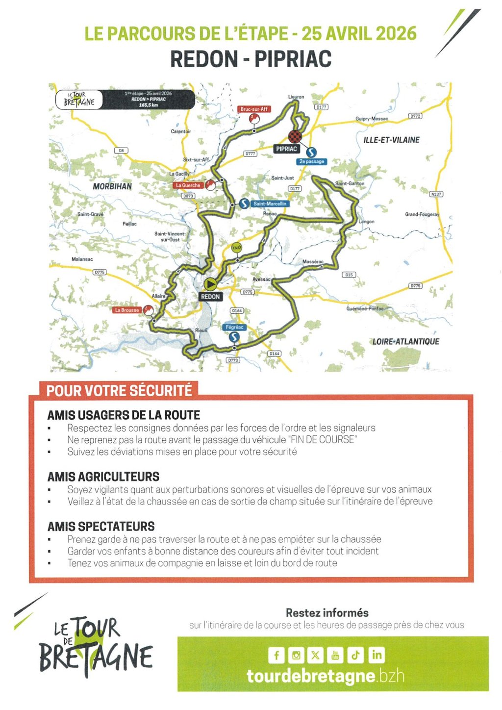 PARCOURS DE L'ÉTAPE DU 25 AVRIL 2026 REDON - PIPRIAC :