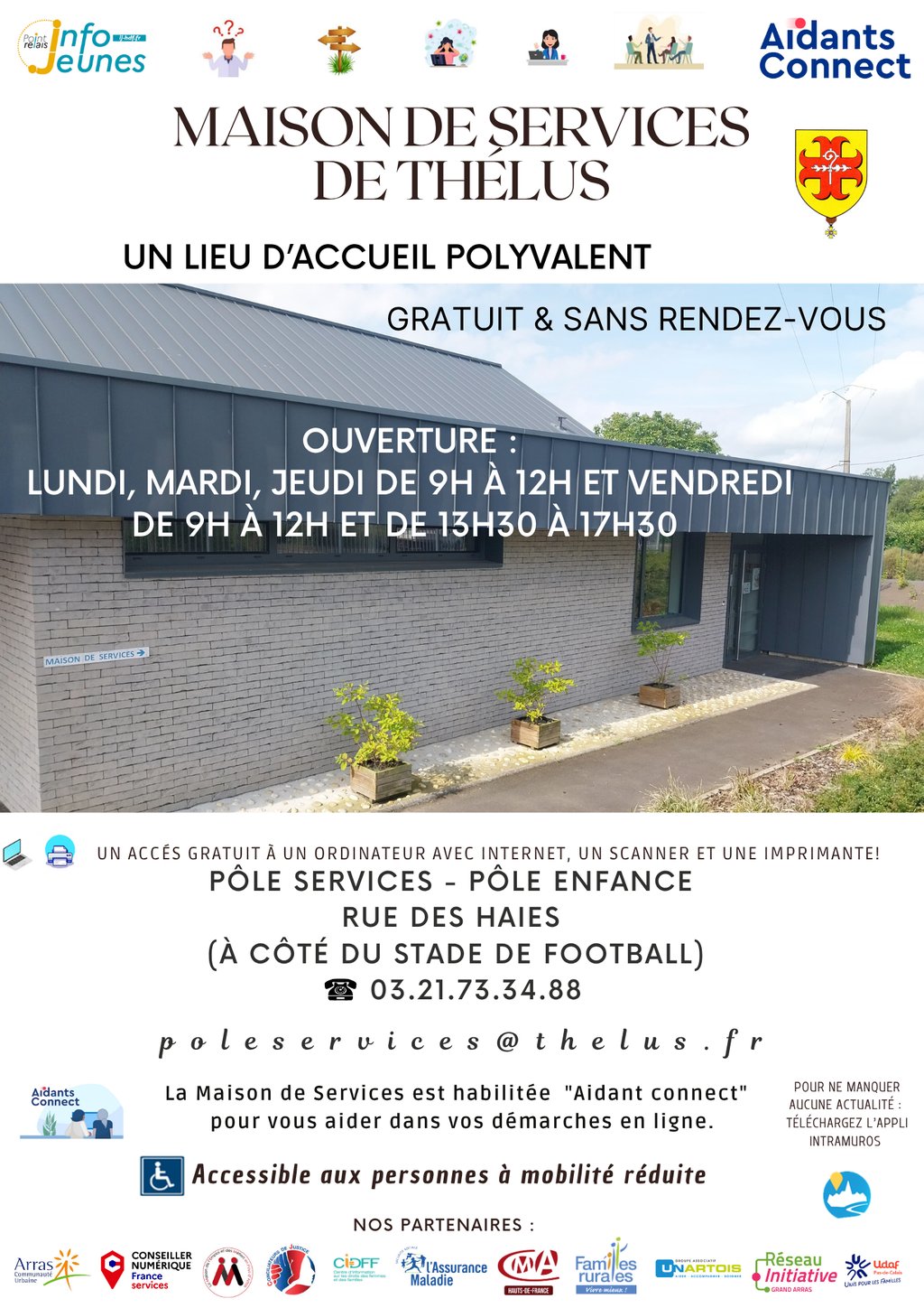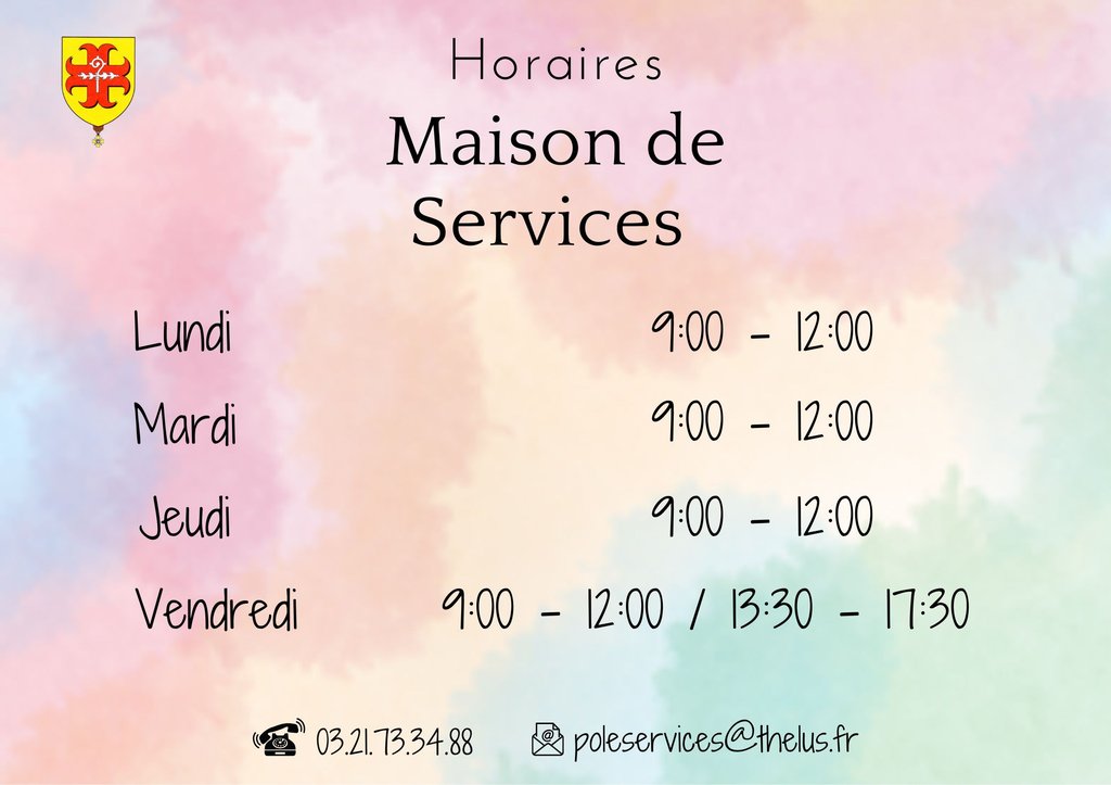 Lorsque la maison de services est fermĂ©e, vous pouvez prendre rendez-vous auprĂšs de la mairie aux horaires d'ouverturesâŻ!