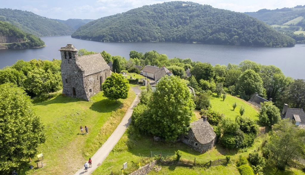C'est peut-être le lieu le plus romantique de l'Aveyron, dans tous les cas une perle posée sur le lac de Sarrans qui étonne les visiteurs au détour du tournant.