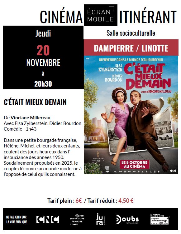 🎬 PROCHAINE SÉANCE CINÉMA ! A DAMPIERRE.