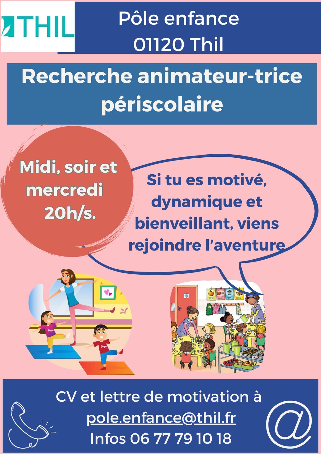 - un(e) animateur(trice) périscolaire, midi, soir et mercredi