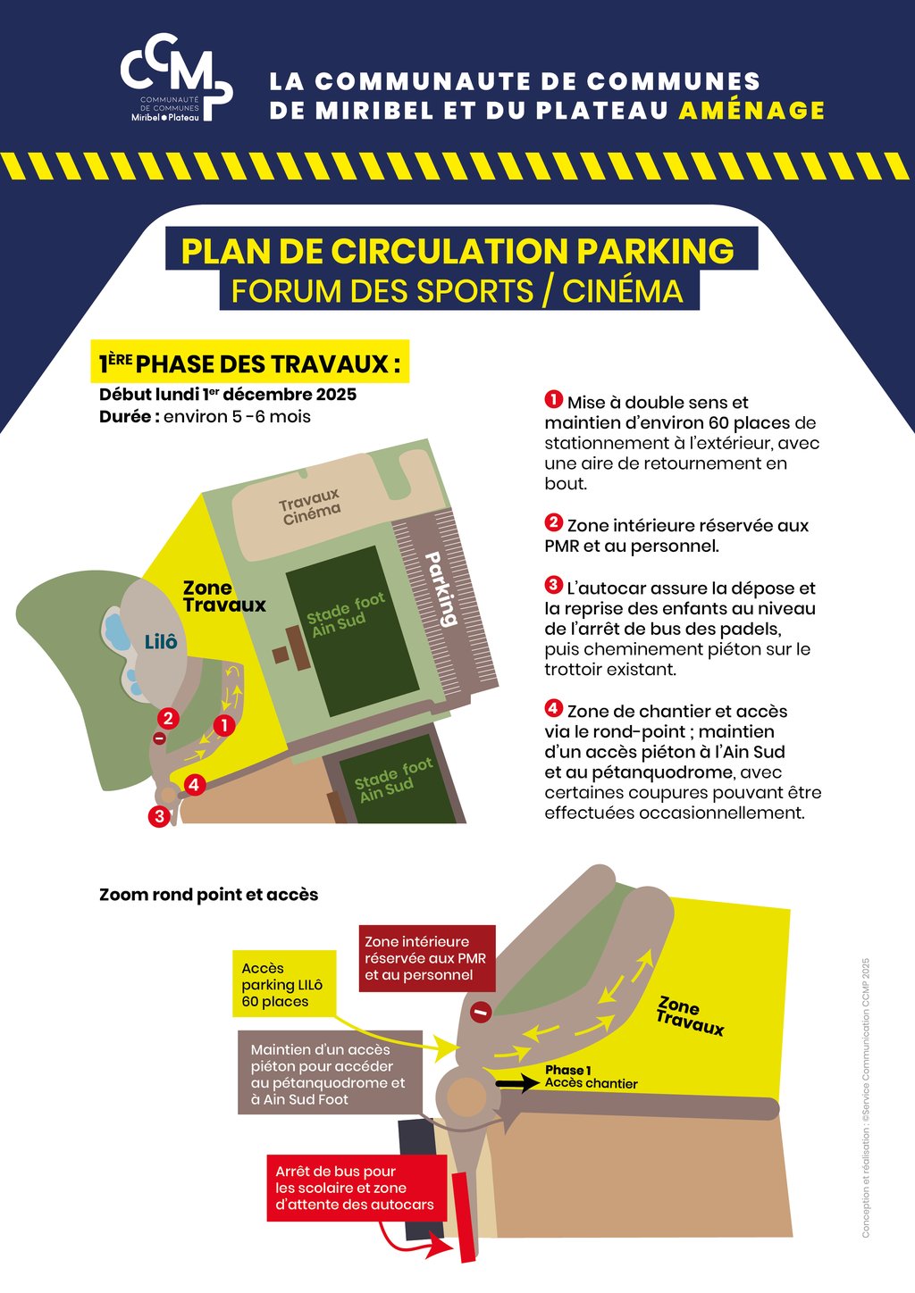 Dans le cadre du chantier du futur Cinéma de la Côtière, des travaux de voirie sont actuellement en cours autour de la zone. L’espace aquatique Lilô ainsi que le Forum des Sports sont directement concernés par ces aménagements.
