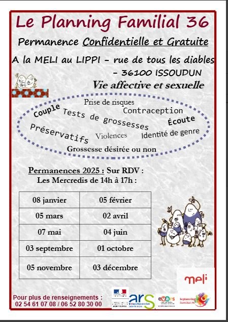 Le Planning Familial 36 poursuit ses permanences en 2025 dans la ville d'Issoudun en partenariat avec la MELI / Lippi