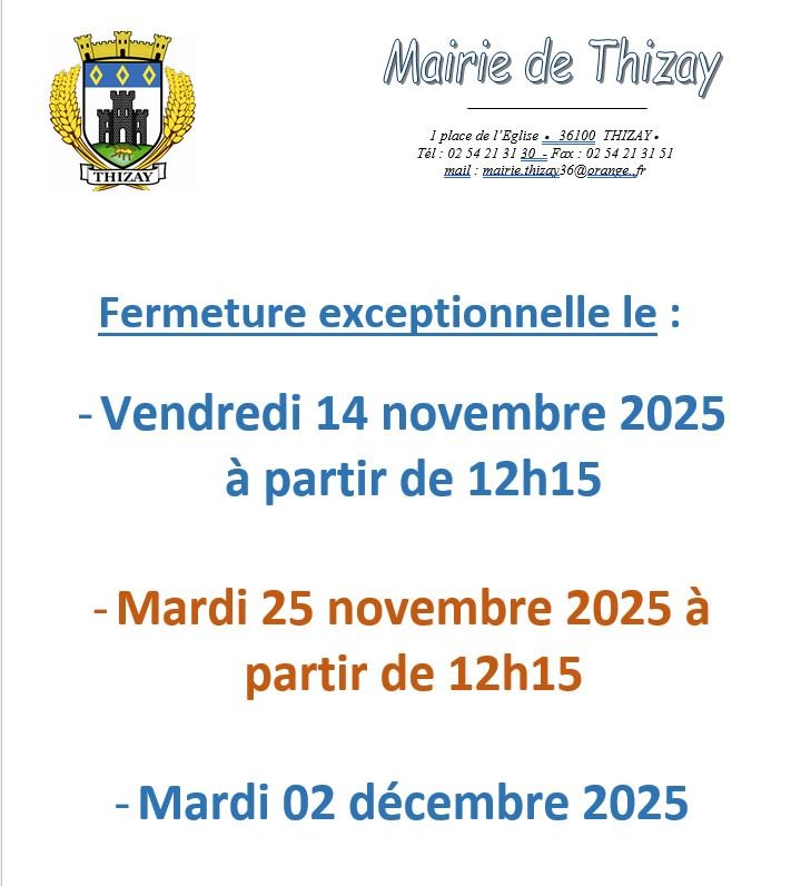 FERMETURE EXCEPTIONNELLE MAIRIE