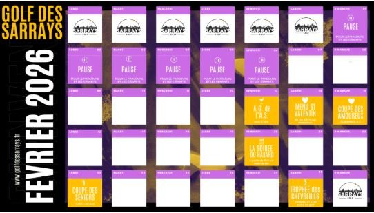 Le mois de février s’annonce rythmé au Golf des Sarrays, avec notamment :