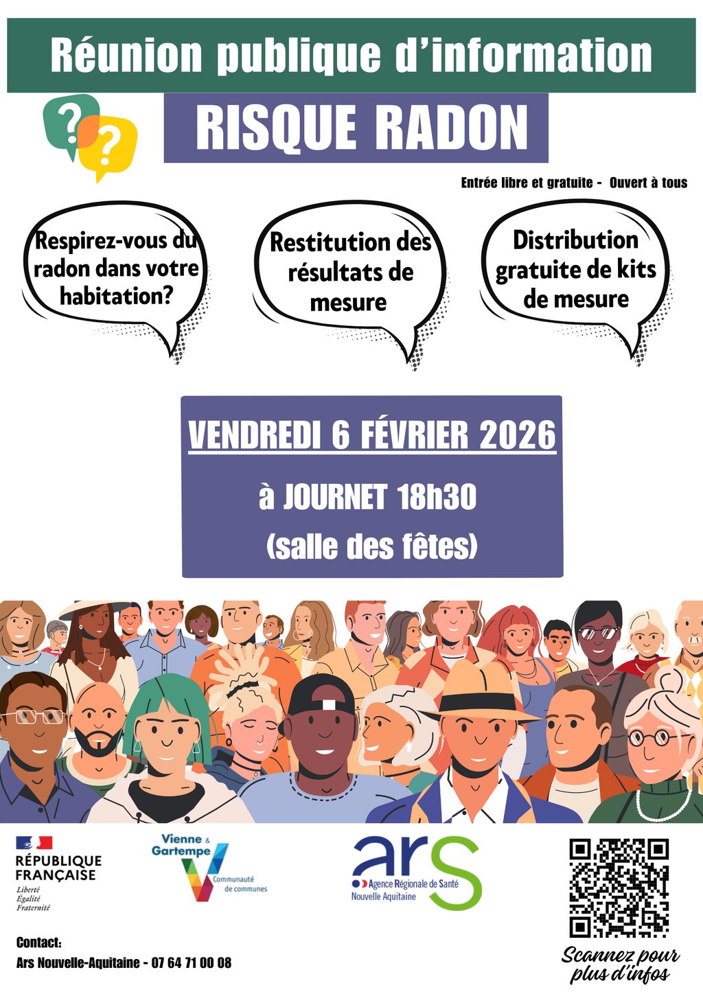 L’Agence Régionale de Santé Nouvelle-Aquitaine, en partenariat avec la Communauté de Communes Vienne et Gartempe, vous invite à une réunion publique de restitution de la campagne de mesure du radon dans les domiciles.