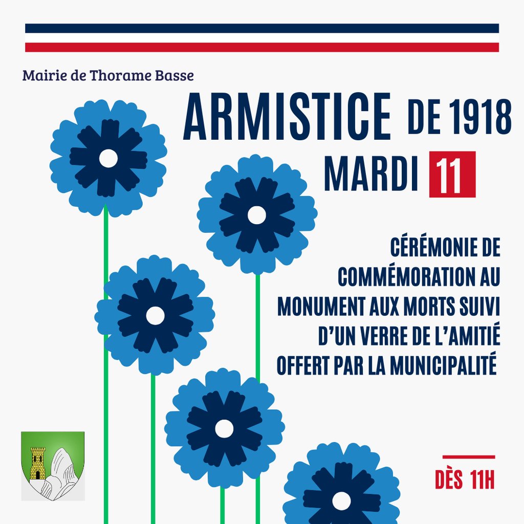 La cérémonie commémorative du 11 novembre aura lieu à partir de 11h sur le parking de la mairie
