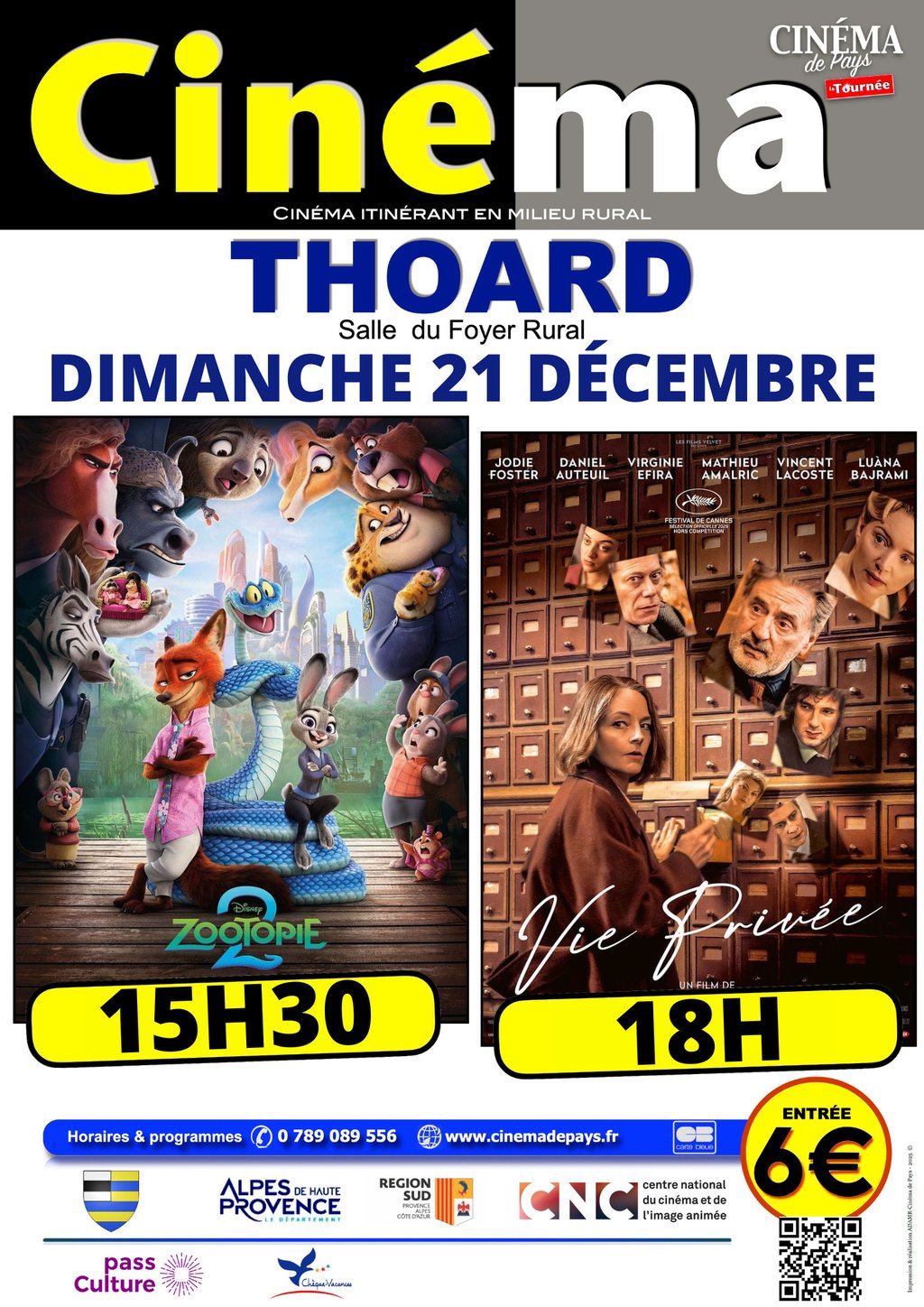 2 séances15h30 : Zootopie 218h : Vie Privée