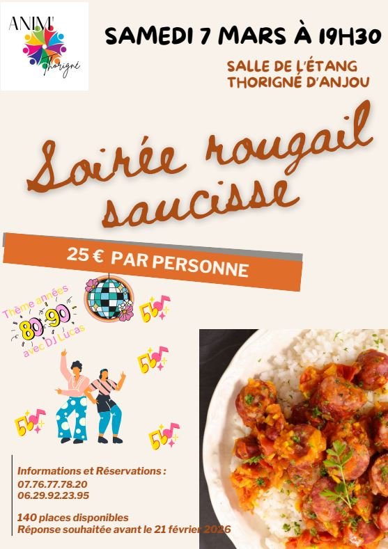 Anim'Thorigné organise le samedi 7 mars un rougail saucisse avec soirée dansante années 80 - 90 !