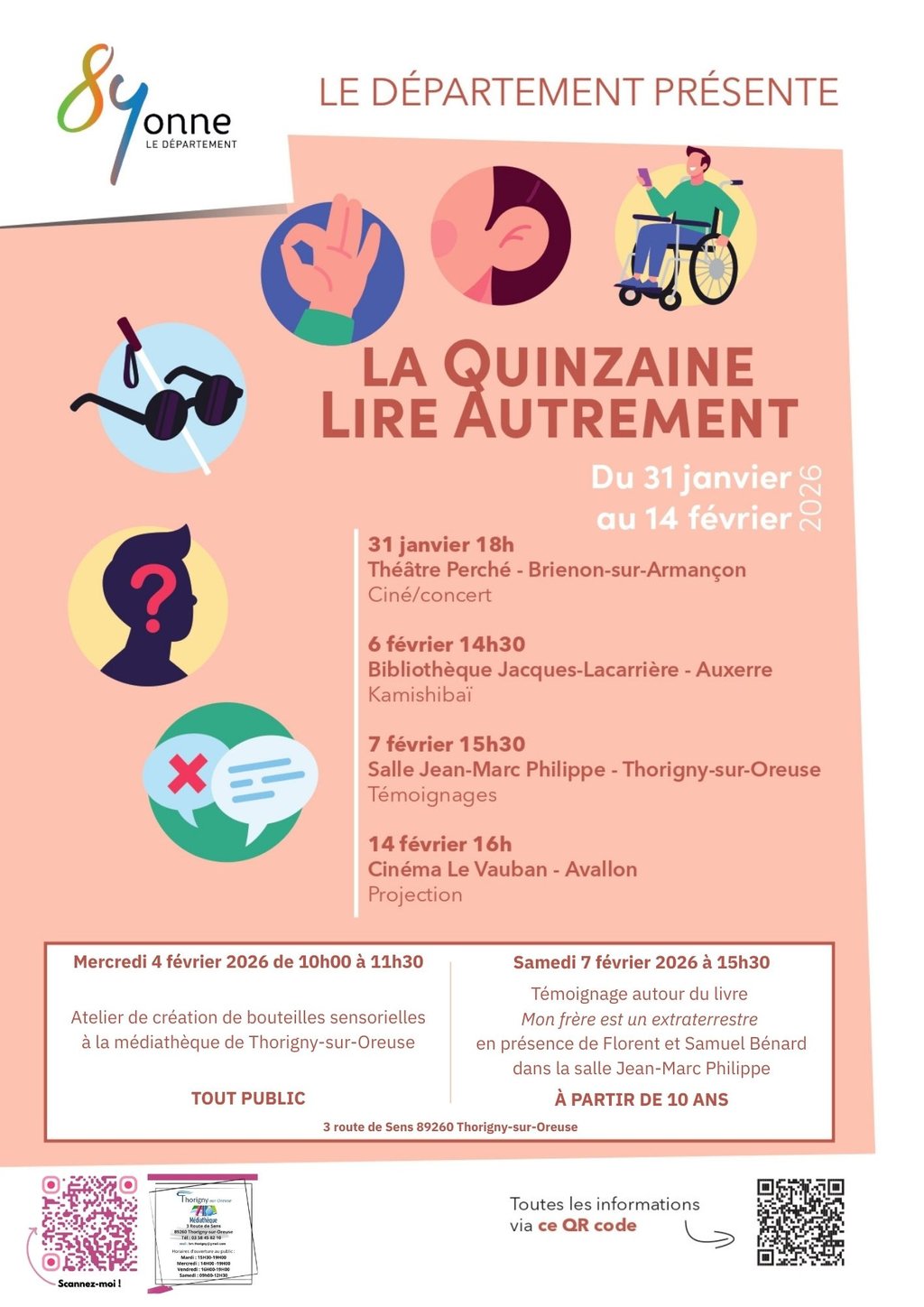 À Thorigny-sur-Oreuse, la médiathèque vous propose un témoignage autour du livre “Mon frère est un extraterrestre” : Florent et Samuel Bénard, deux frères, partagent leur histoire, leur regard et leur vécu face à l’autisme. Un temps d’échange sincère pour mieux comprendre, mieux écouter.