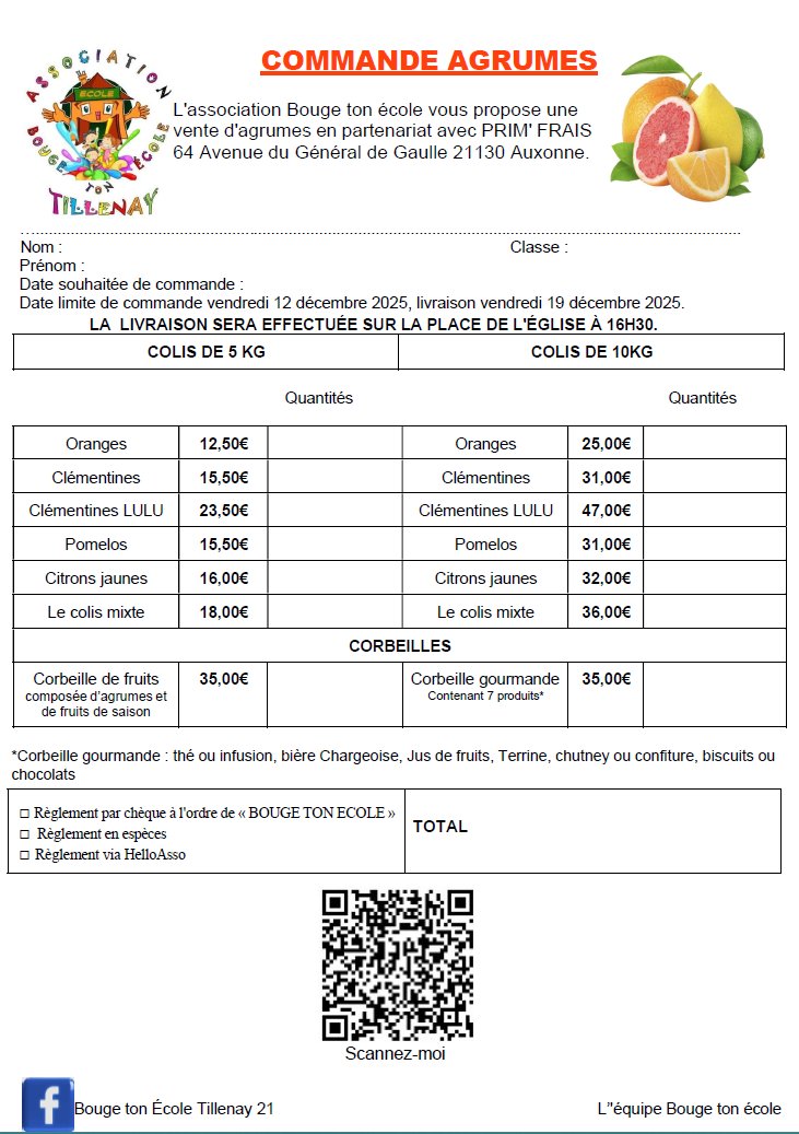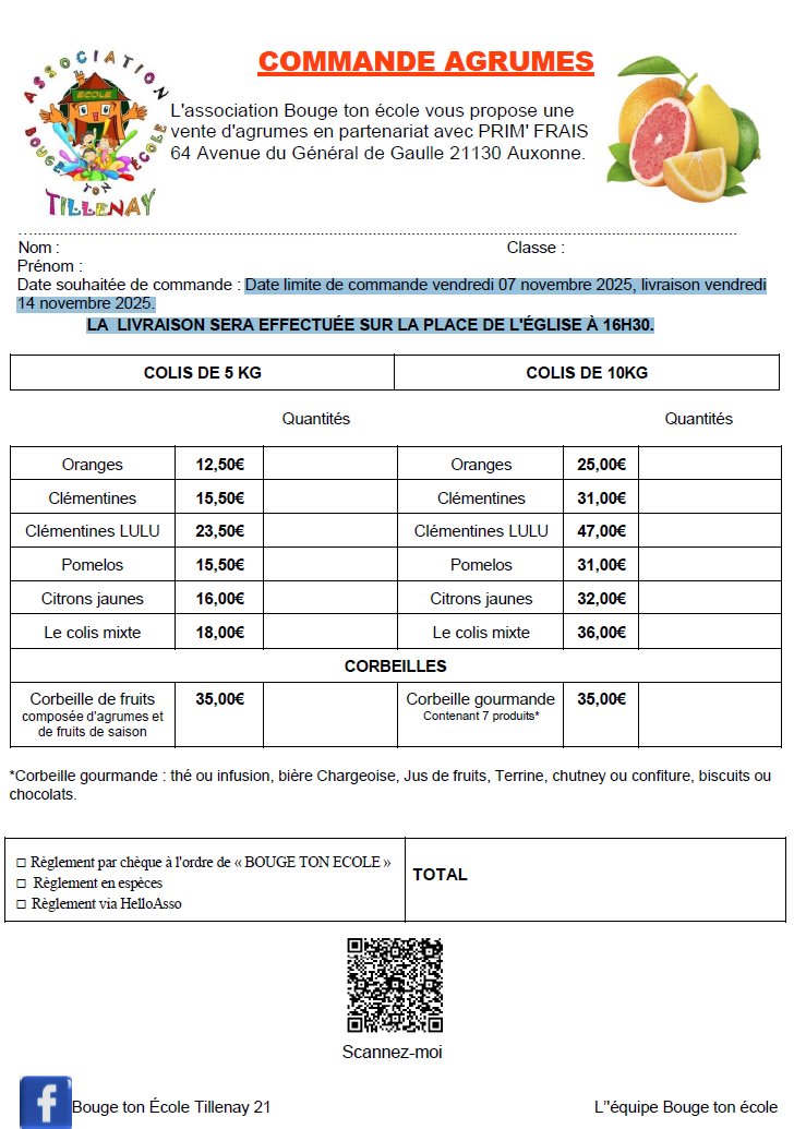 L'association Bouge ton école vous propose deux ventes d'agrumes en partenariat avec PRIM' FRAIS 64 Avenue du Général de Gaulle 21130 Auxonne.