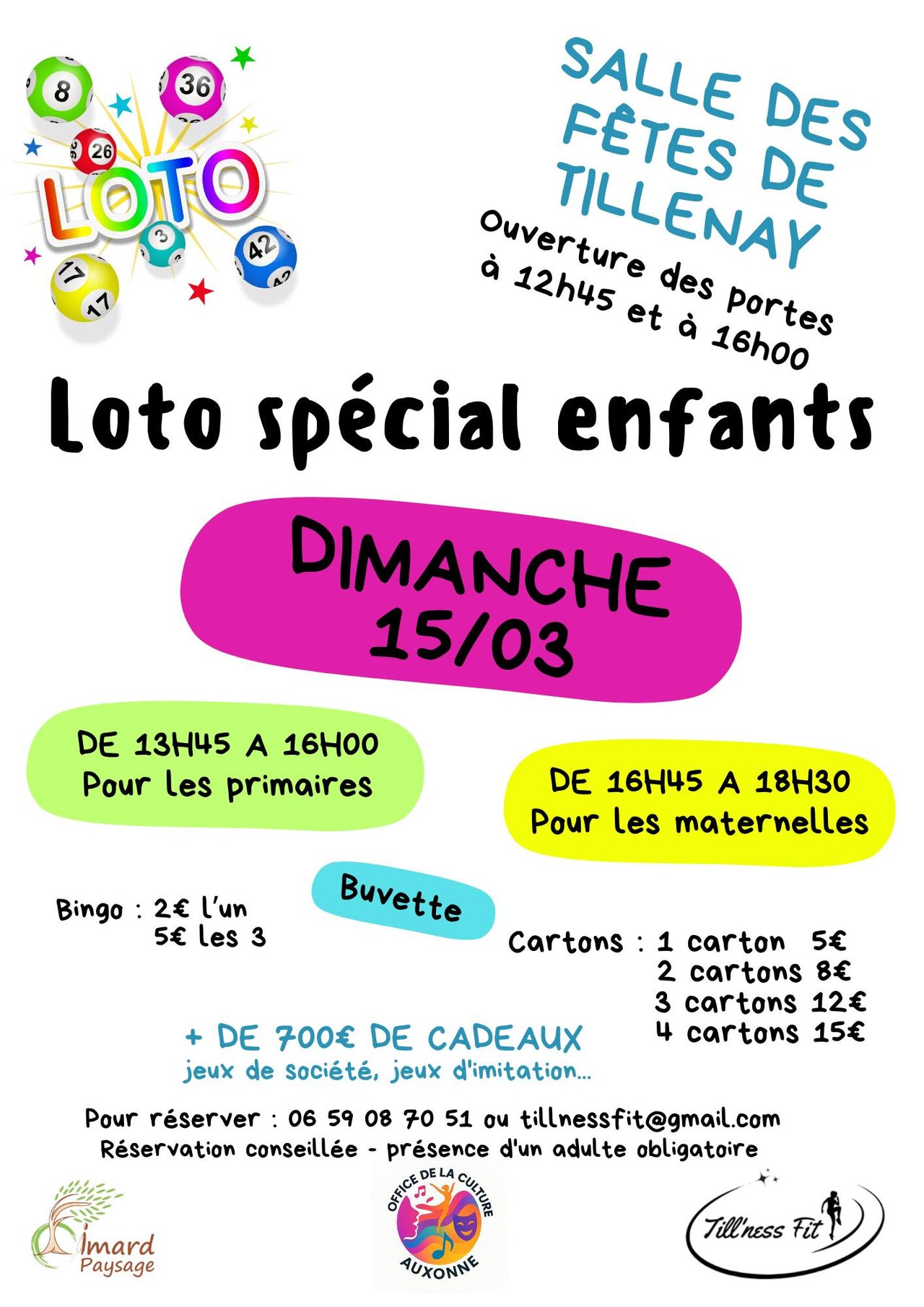 L'association des Till'ness Fit organise un loto spécial enfants, le dimanche 15 mars 2026, à partir de 13H45.