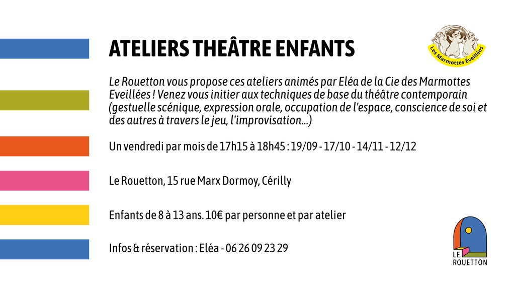 Le Rouetton vous propose des ateliers théâtre pour enfants, animés par Eléa de la Compagnie des Marmottes Eveillées 😃