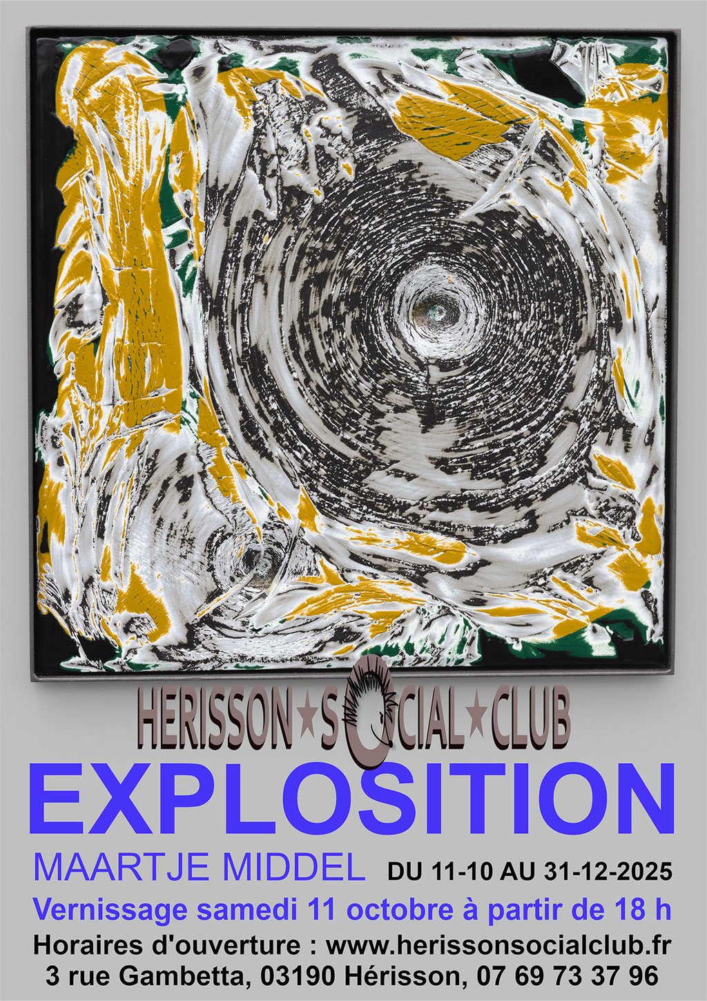 Samedi 11 octobre à partir de 18h, Maartje Middel vous invite au vernissage de son exposition "Explosion" au Hérisson Social Club. Les œuvres de l’artiste plasticienne restent visibles sur place, jusqu’au 31 décembre.