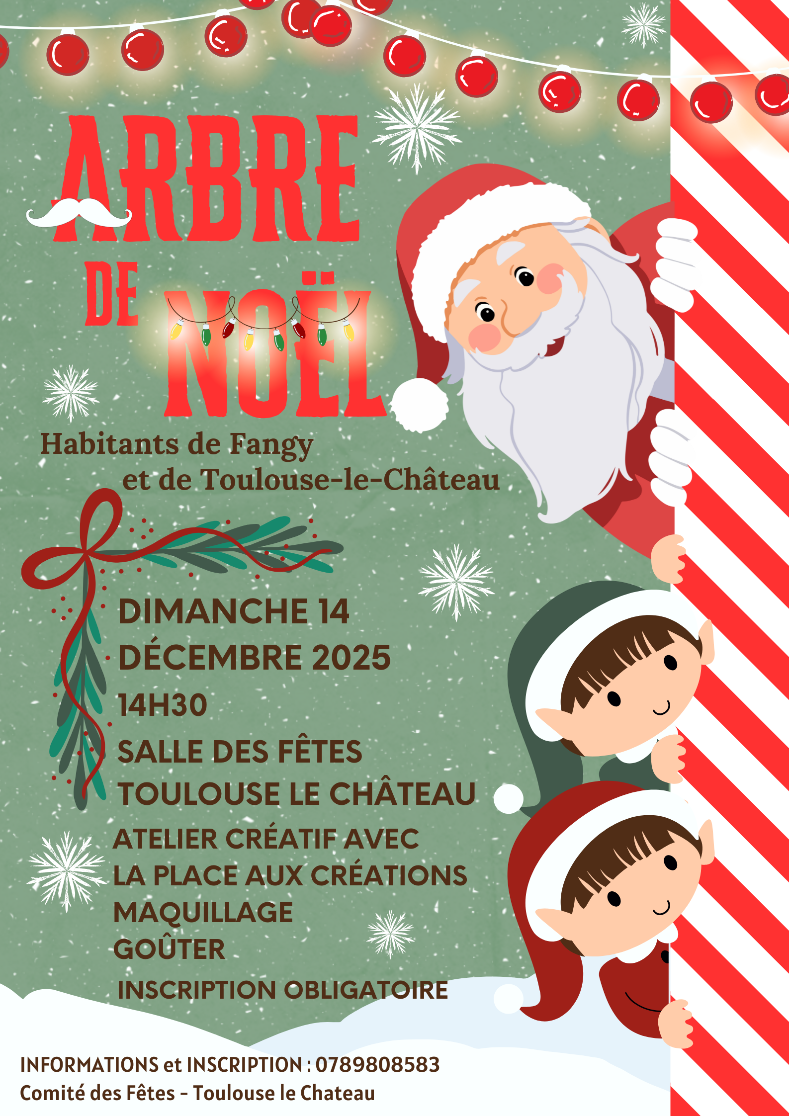 Lâarbre de NoĂ«l, organisĂ© et offert par le ComitĂ© des fĂȘtes, est destinĂ© aux enfants et petits-enfants de Fangy et de Toulouse-le-ChĂąteau.