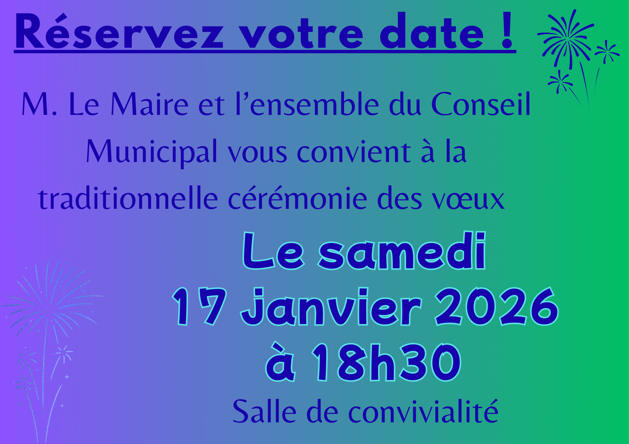 M. Le Maire et l’ensemble du Conseil Municipal vous convient à la traditionnelle cérémonie des vœux.