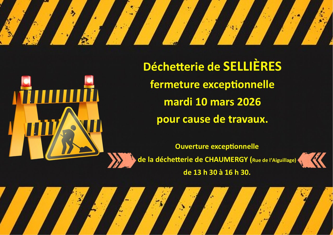 La déchetterie de Sellières sera exceptionnellement fermée mardi 10 mars 2026 après-midi.