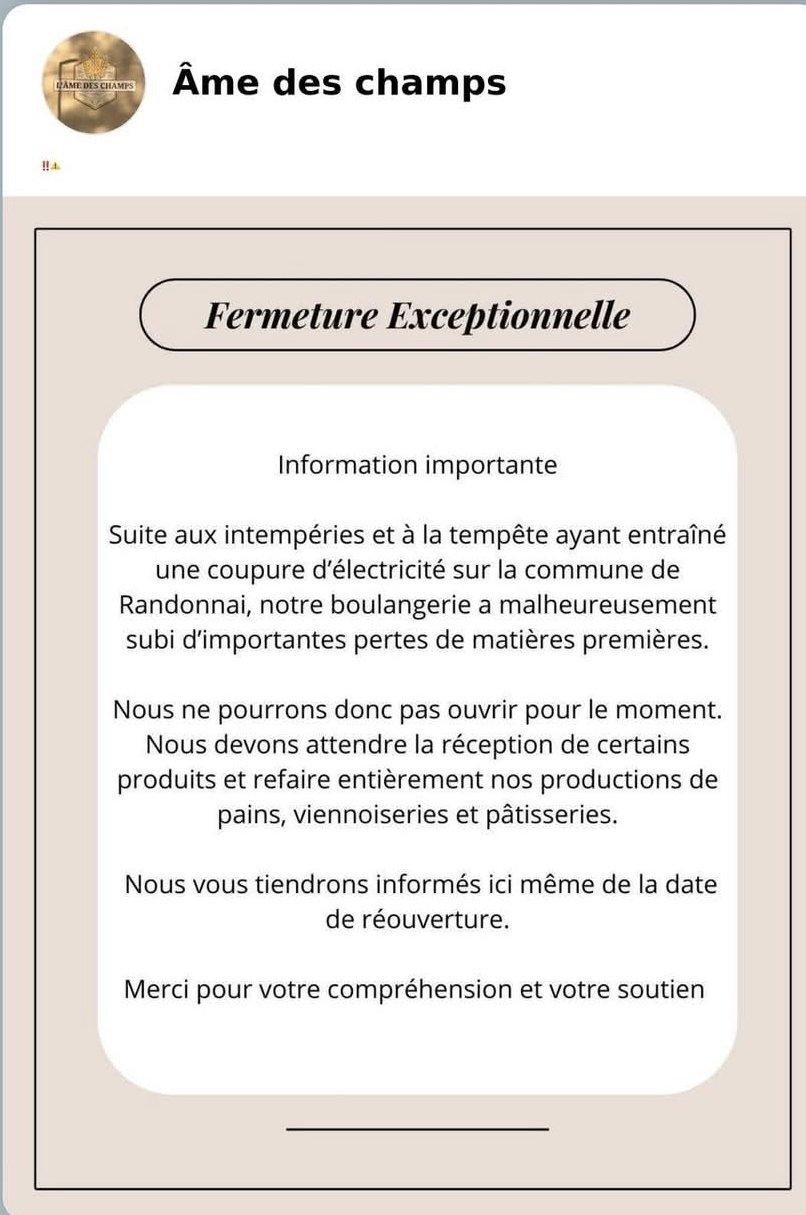 Fermeture suite à la coupure de courant ,perte de la matière première .