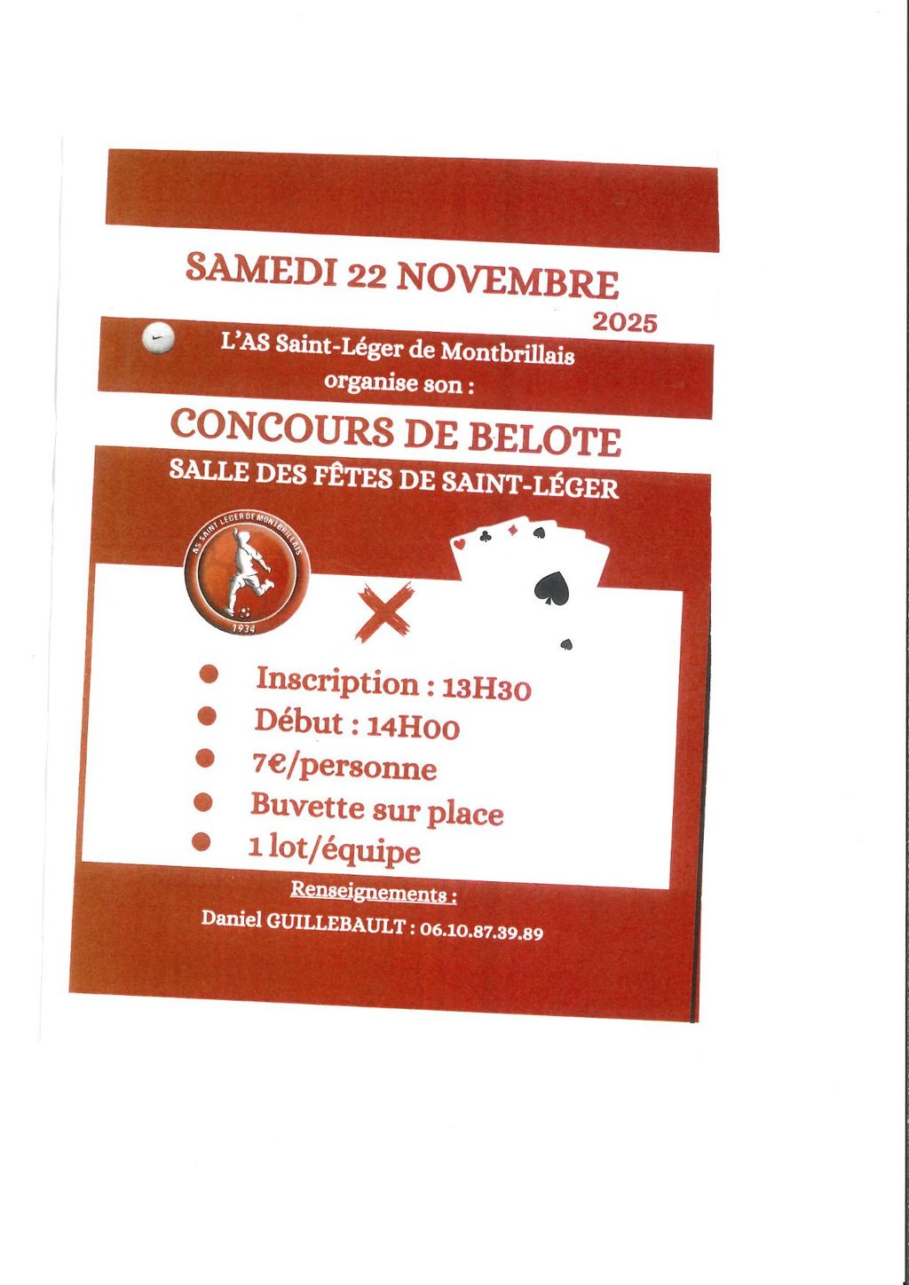 Concours de belote organisé par l'AS Saint Léger de Montbrillais