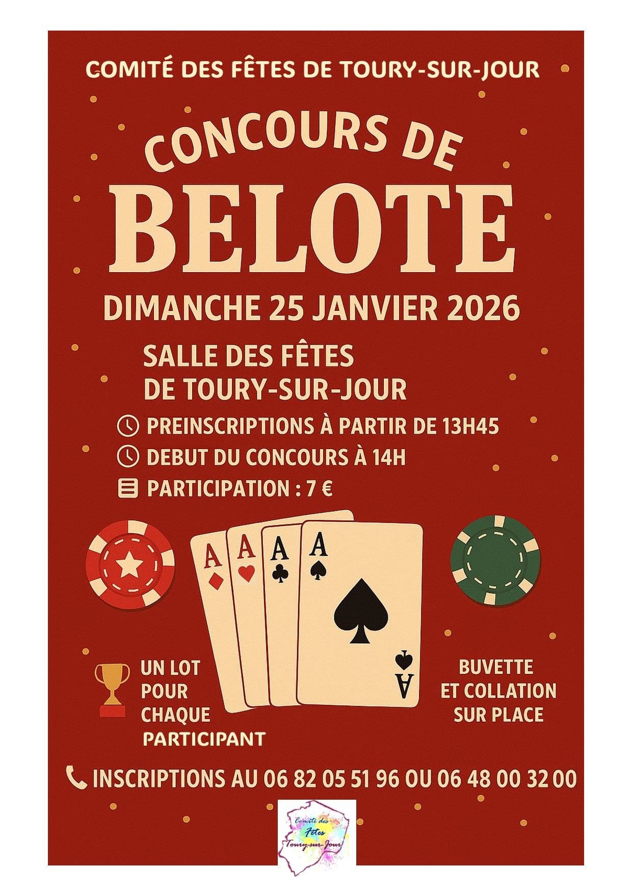 CONCOURS DE BELOTE le dimanche 25 janvier 2026 à 14h00