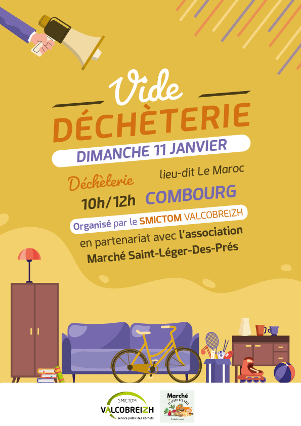 L'association Marché St Léger Des Prés organise le prochain Vide-déchèterie, le dimanche 11 janvier de 10h à 12h, à la déchèterie de Combourg.