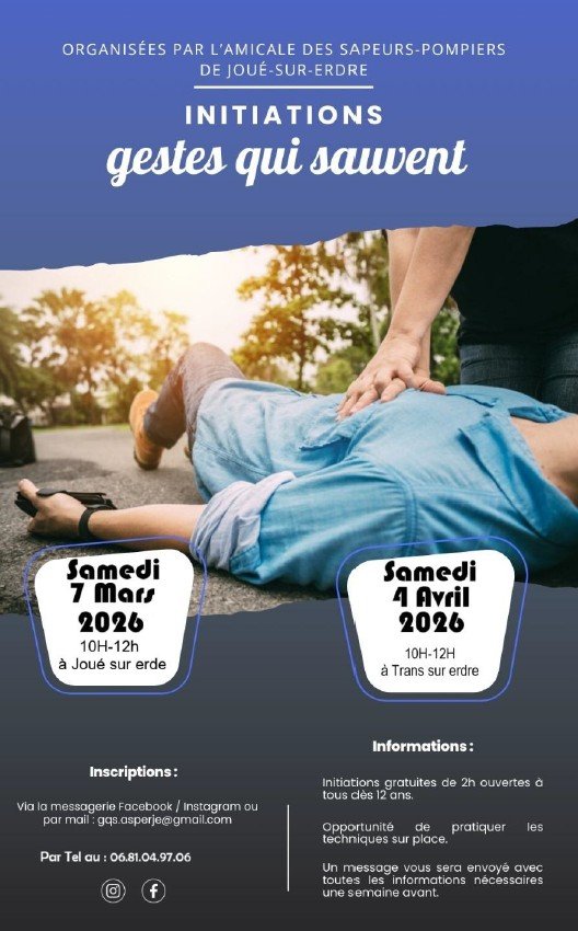 L'Amicale des sapeurs-pompiers de Joué-sur-Erdre vous propose deux sessions d'initiation aux gestes qui sauvent :