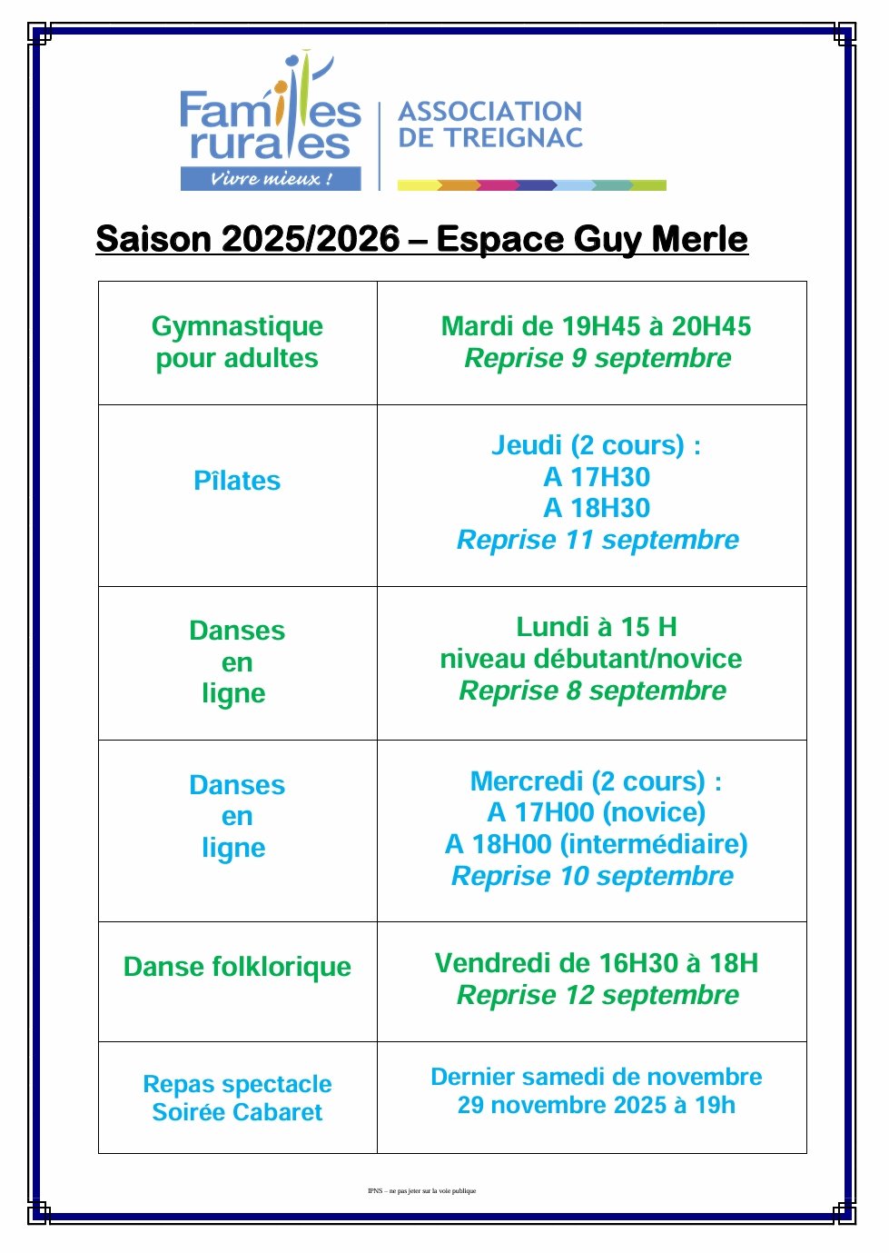 CALENDRIER ACTIVITÉS FAMILLE RURALE 2025/2026
