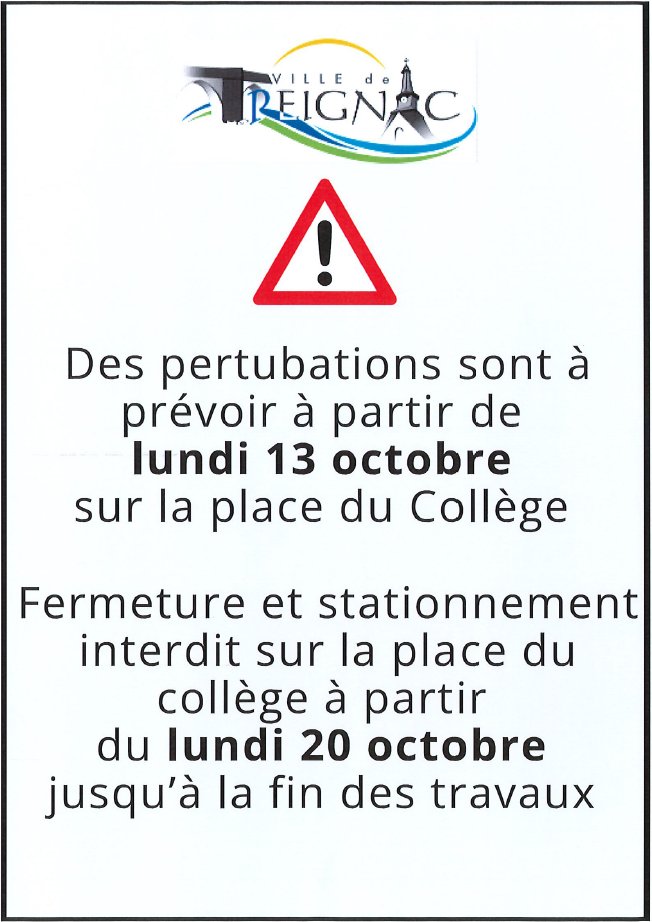 À partir du lundi 13 octobre 2025 des perturbations sont à prévoir place du collège