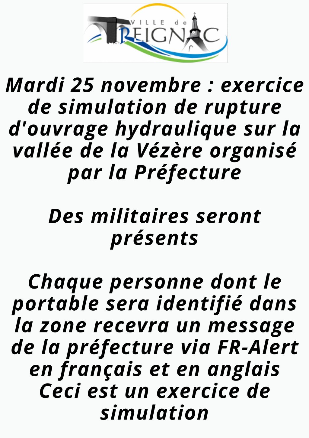Mardi 25 novembre : exercice de simulation de rupture d'ouvrage hydraulique sur la vallée de la Vézère organisé par la Préfecture