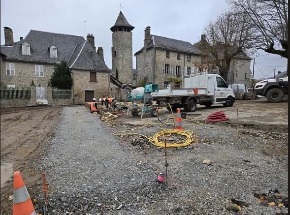 Les travaux d’aménagement du bourg sont en cours après les fouilles archéologiques, la rénovation des réseaux d’assainissement et pluvial, d’eau potable et l’enfouissement des réseaux aériens. Cette première tranche concerne la place du collège et l’impasse Dabo.