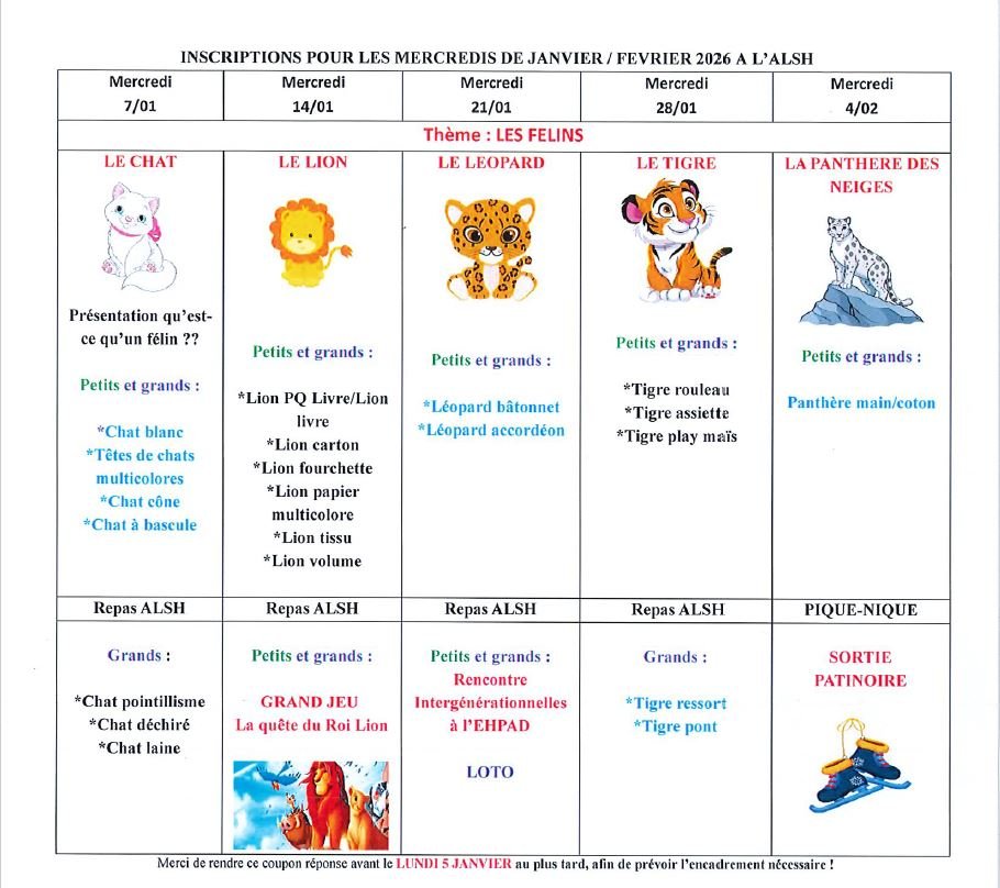 PROGRAMME ALSH DES MERCREDIS DE JANVIER-FÉVRIER 2026
