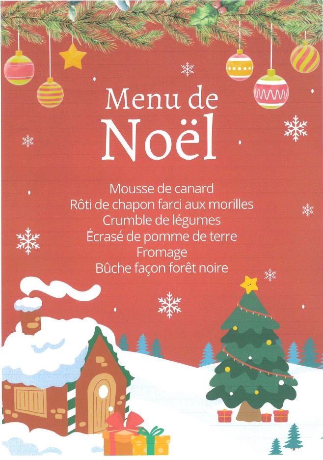 MENU DE NOËL DE L'ÉCOLE CE JEUDI 18 DÉCEMBRE