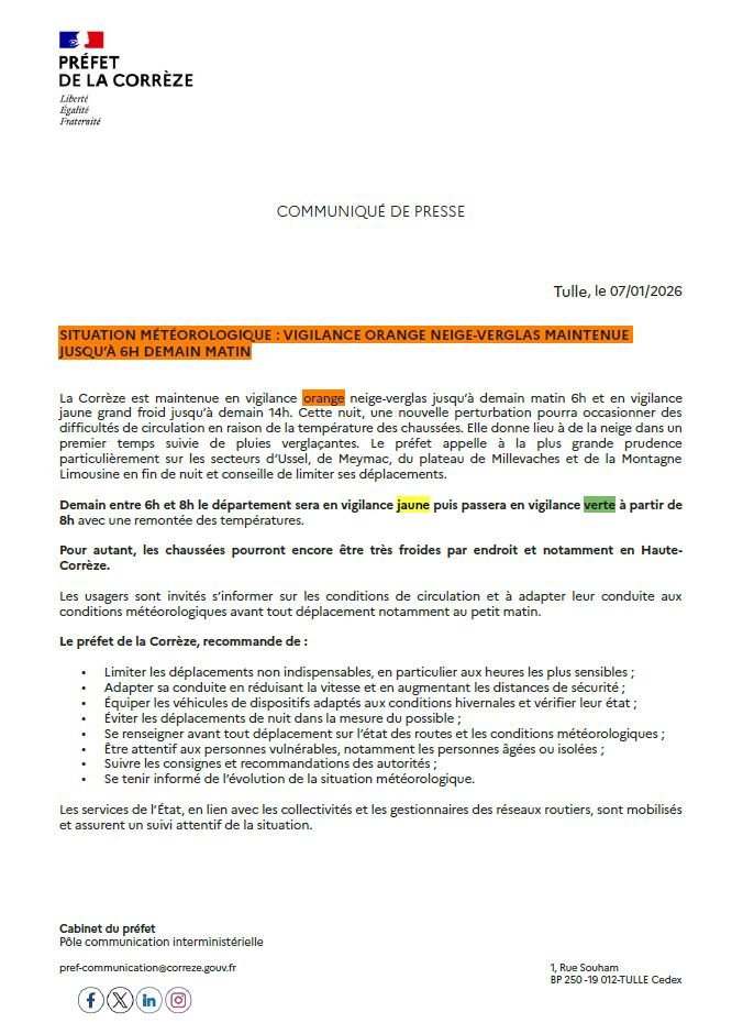 COMMUNIQUÉ DE PRESSE DE LA PRÉFECTURE