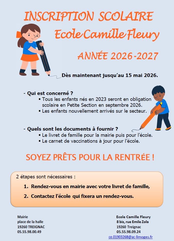 Fiche pratique pour les inscriptions à l'école Camille Fleury pour la rentrée 2026-2027