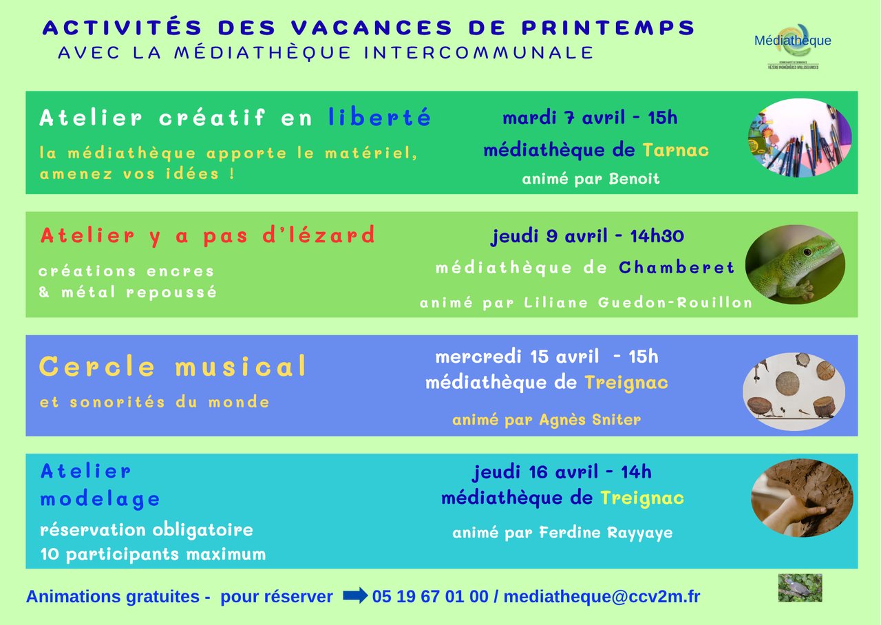 ACTIVITÉS DES VACANCES DE PRINTEMPS AVEC LA MÉDIATHÈQUE INTERCOMMUNALE