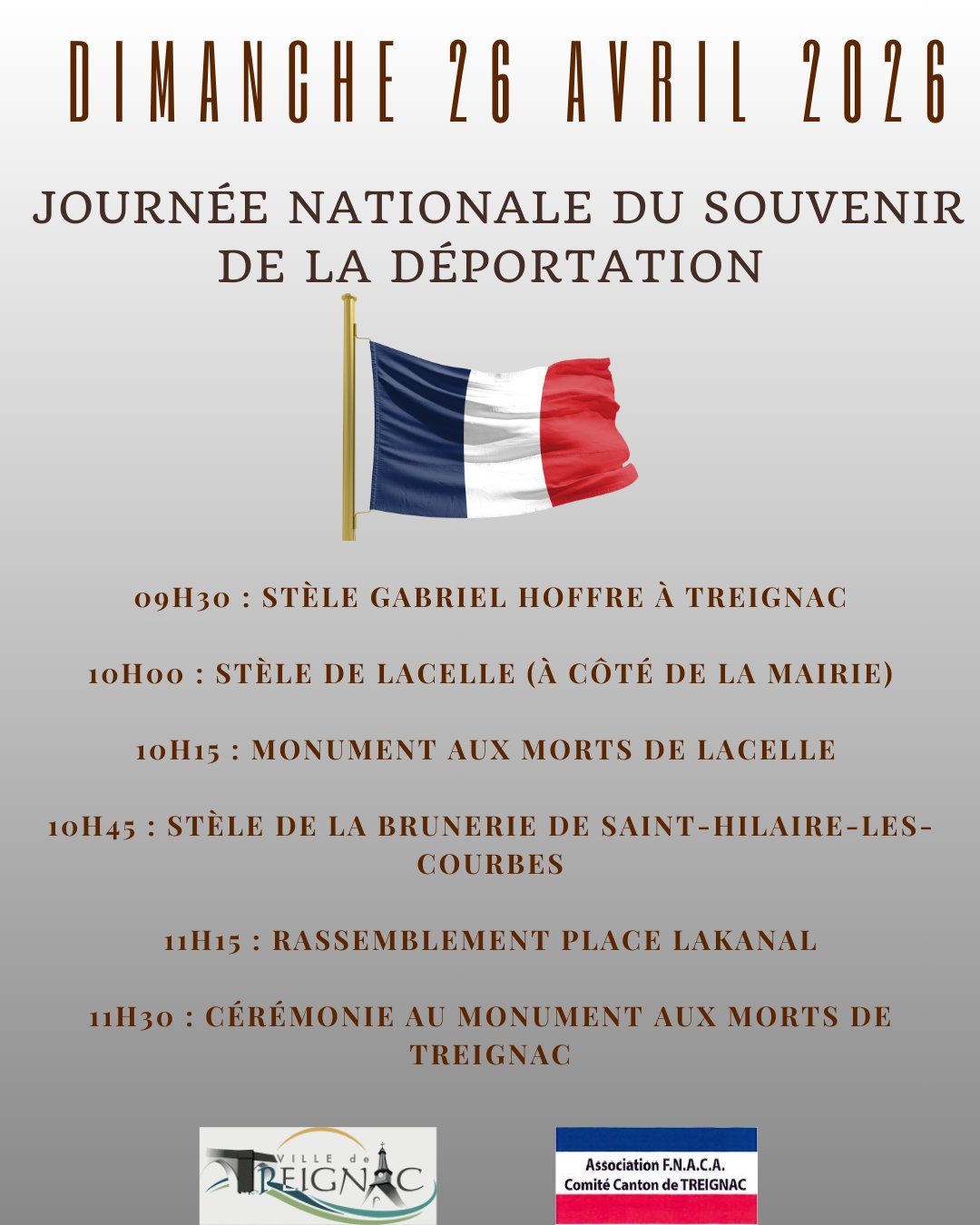 11 h 30 : Cérémonie au monument aux morts de Treignac